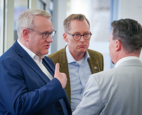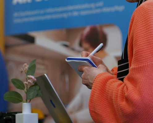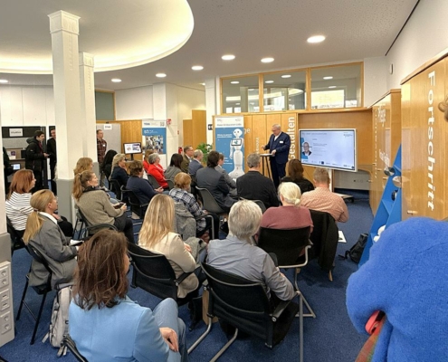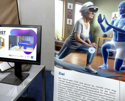 Neue Technologien für Pflege, Therapie und Gesundheitsversorgung stehen im Fokus des heute eröffneten Macher- und Bildungslabors am Roßmarkt. Besucherinnen und Besucher konnten unter anderem virtuelle Werkzeuge für die Pflegeausbildung und ein System der erweiterten Realität für die Physiotherapie älterer Menschen ansehen und probieren. Damit können komplexe Pflegesituationen digital simuliert und realitätsnahe Übungsszenarien wiederholt, analysiert und verbessert werden. Das kann sowohl die Ausbildung nachhaltig unterstützen als auch Entlastungen des Pflegepersonals zur Wirkung haben. In einer Region mit zunehmender Überalterung und spürbar steigendem Pflegebedarf bei gleichzeitigem Personalmangel bieten zeigen diese neuen Technologien schon jetzt Entlastungseffekte.