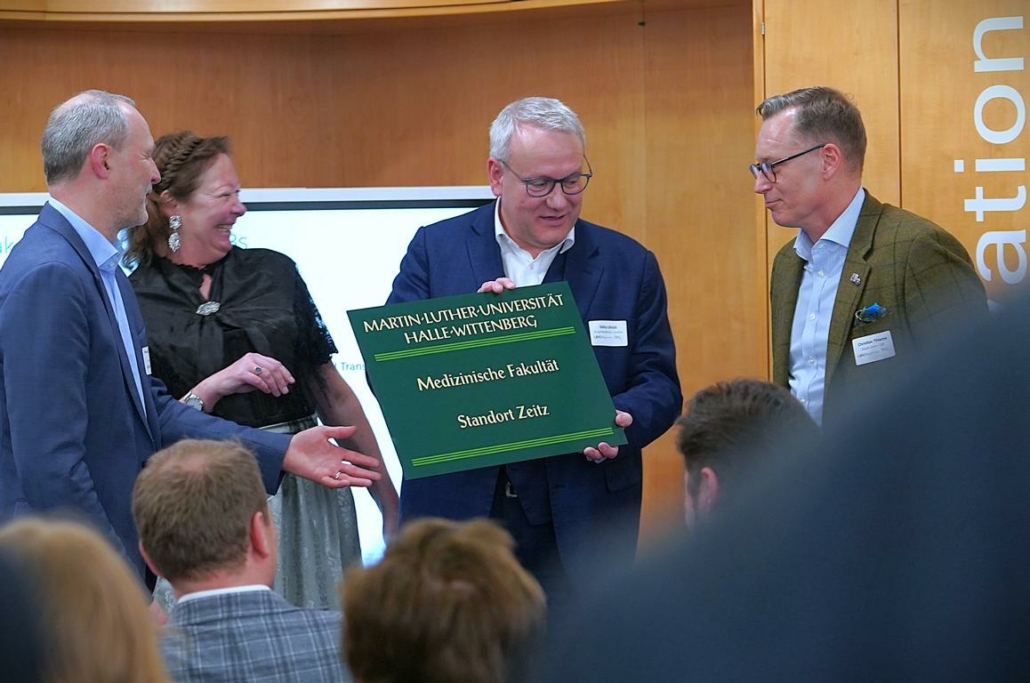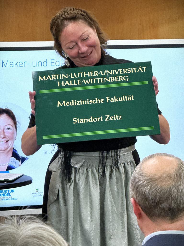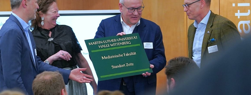 Ein guter Tag für Zeitz. Seit gestern (4.3.2026) ist dieser Ort der Innovationen in der Pflege- und Gesundheitsversorgung der Region offiziell eröffnet und keine Zukunftsmusik mehr. Offiziell bekannt wurde auch, dass Zeitz am Roßmarkt 4 ein Standort der Medizinischen Fakultät der Martin Luther Universität Halle-Wittenberg ist. Die Prorektorin der Uni hatte am Rande ihres Statements zur Eröffnung ein entsprechendes Schild übergeben.