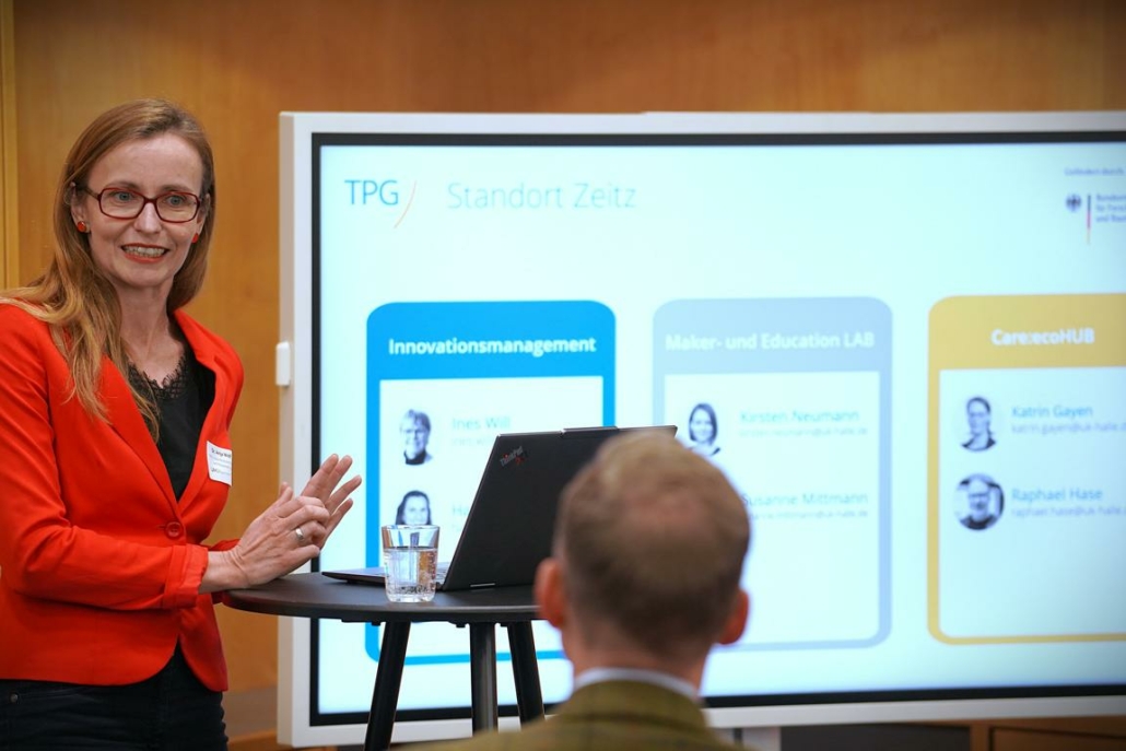 TPG wird von der Medizinischen Fakultät der MLU Halle-Wittenberg realisiert und ist in fünf Regionen Sachsen-Anhalts mit jeweils unterschiedlicher Schwerpunktsetzung angesiedelt. Neben der Präsentation verfügbarer Technologien sucht die TPG Ideen für innovative, transferorientierte Forschungs- und Entwicklungsprojekte (FuE-Projekte), die im Bereich der Pflege- und Gesundheitsversorgung nachhaltige Impulse für den Strukturwandel im Mitteldeutschen Revier setzen. (Quelle: zeitzonline.de)