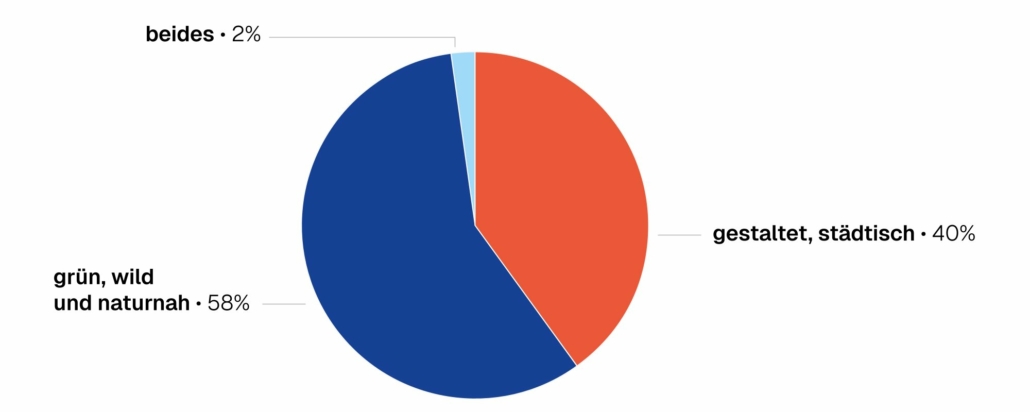 In einer Frage ging es darum, wie sich BürgerInnen das Gelände selbst und das Freigelände vorstellen würden. Ein ruhiges, erholsames oder lieber lebendig und aktives Gelände? Und die Freiflächen, sollen sie grün, wild und naturnah sein oder eher einer städtischen Gestaltung folgen?